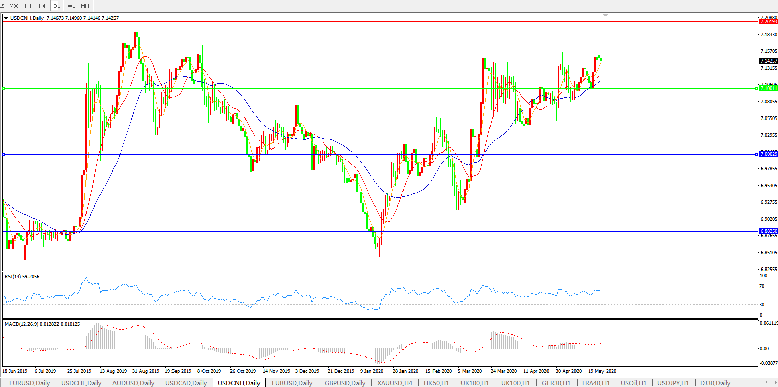 美元兑人民币USDCNH 日线图: