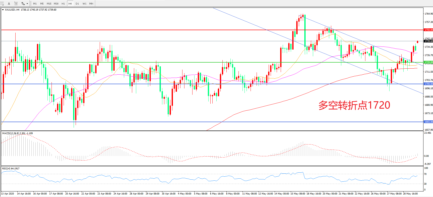 交易策略: 在1720.00之上看涨,目标1750.00 1785.00