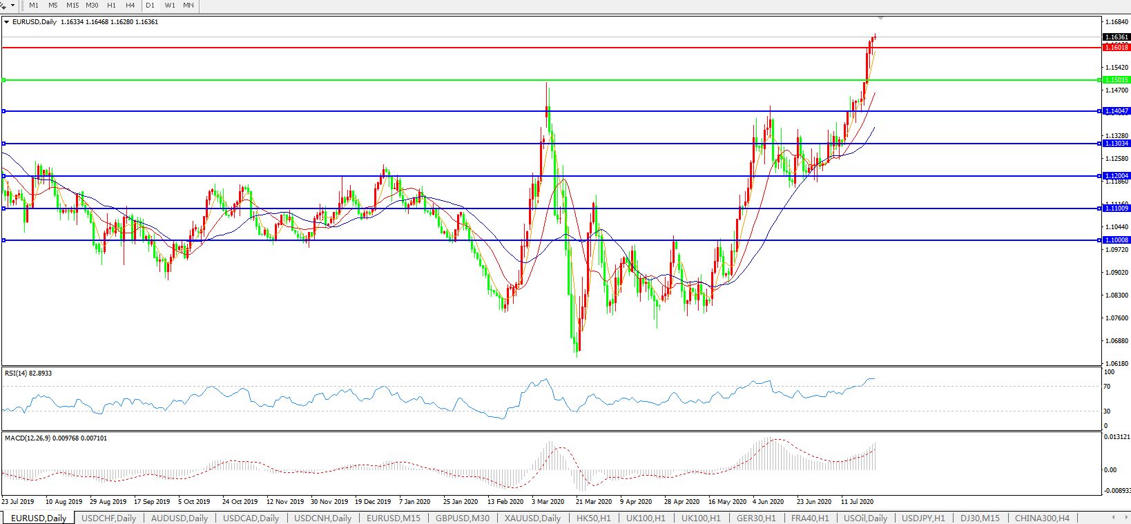 欧元兑美元EURUSD 日线图: