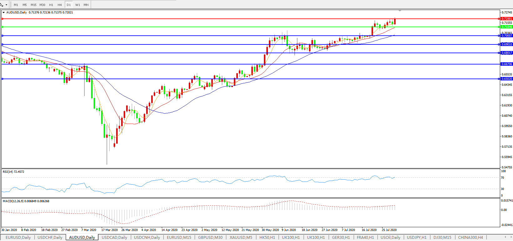 澳元兑美元AUDUSD    日线图: