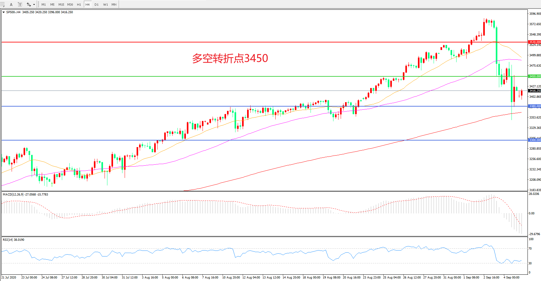 多空转折点:3450.00