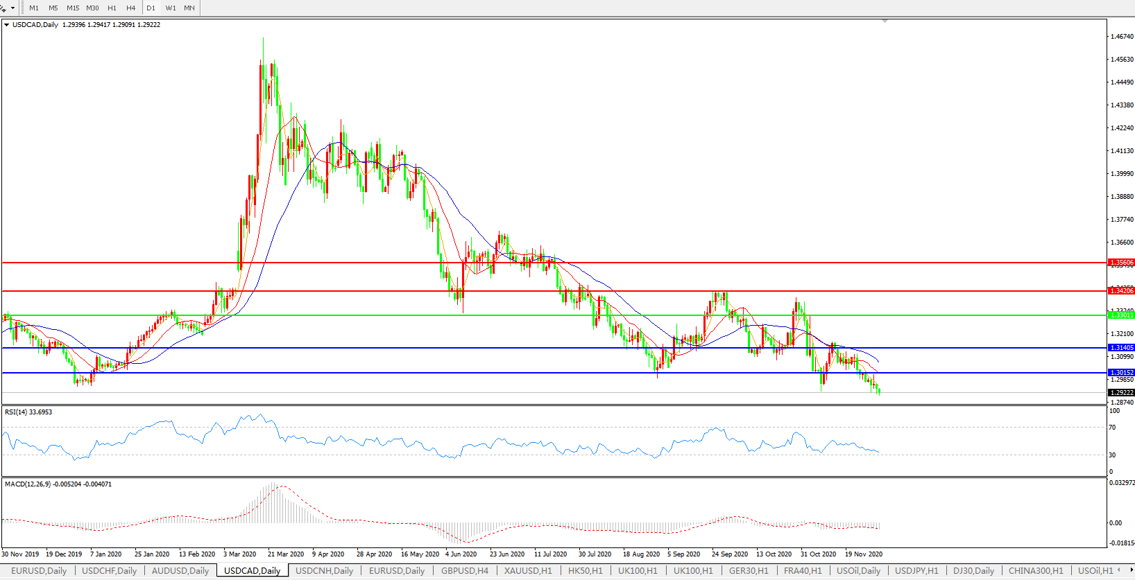美元兑加元USDCAD    日线图: