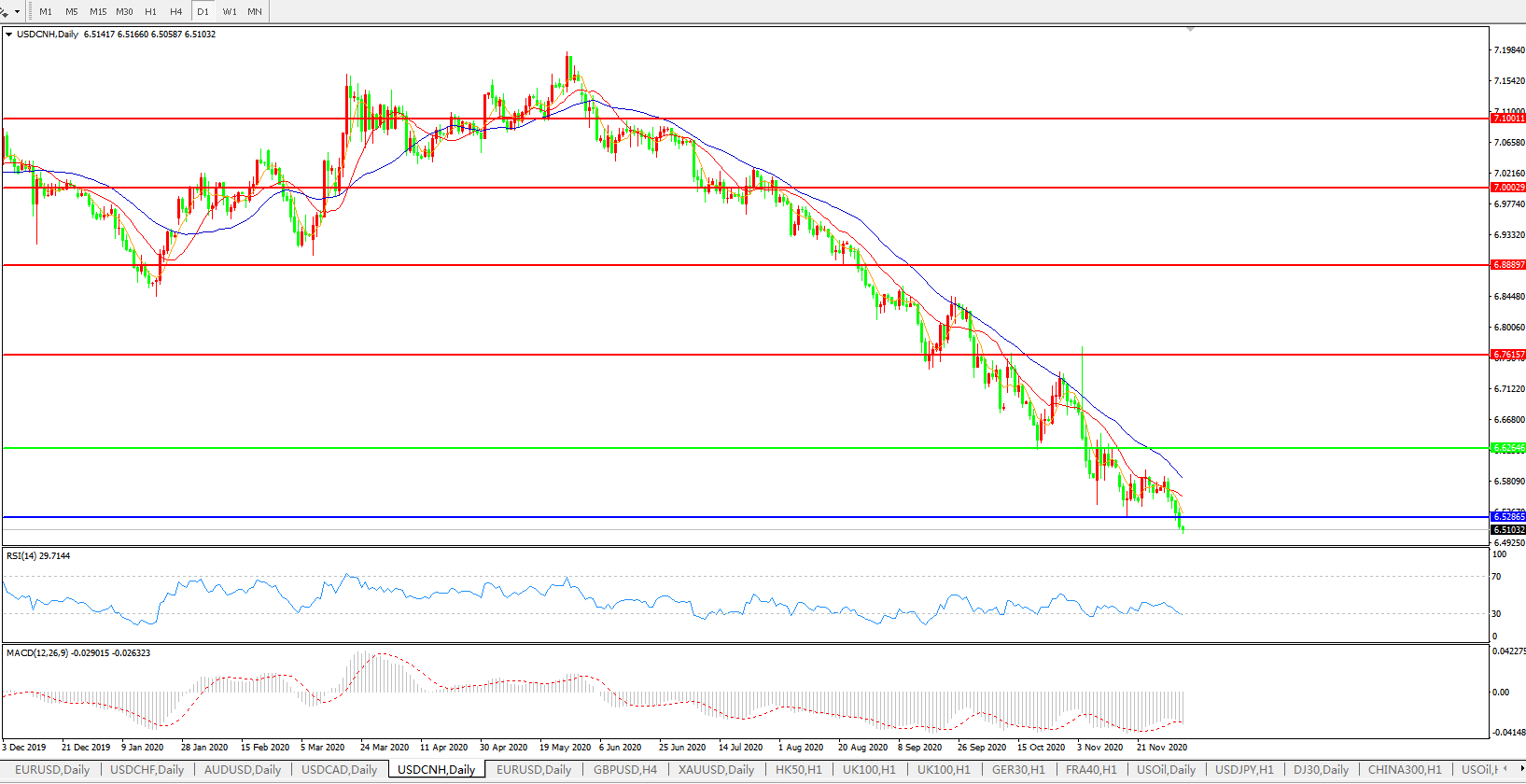 交易策略: 在6.6265之下,看跌,目标价位为6.5286,然后为6.3500。