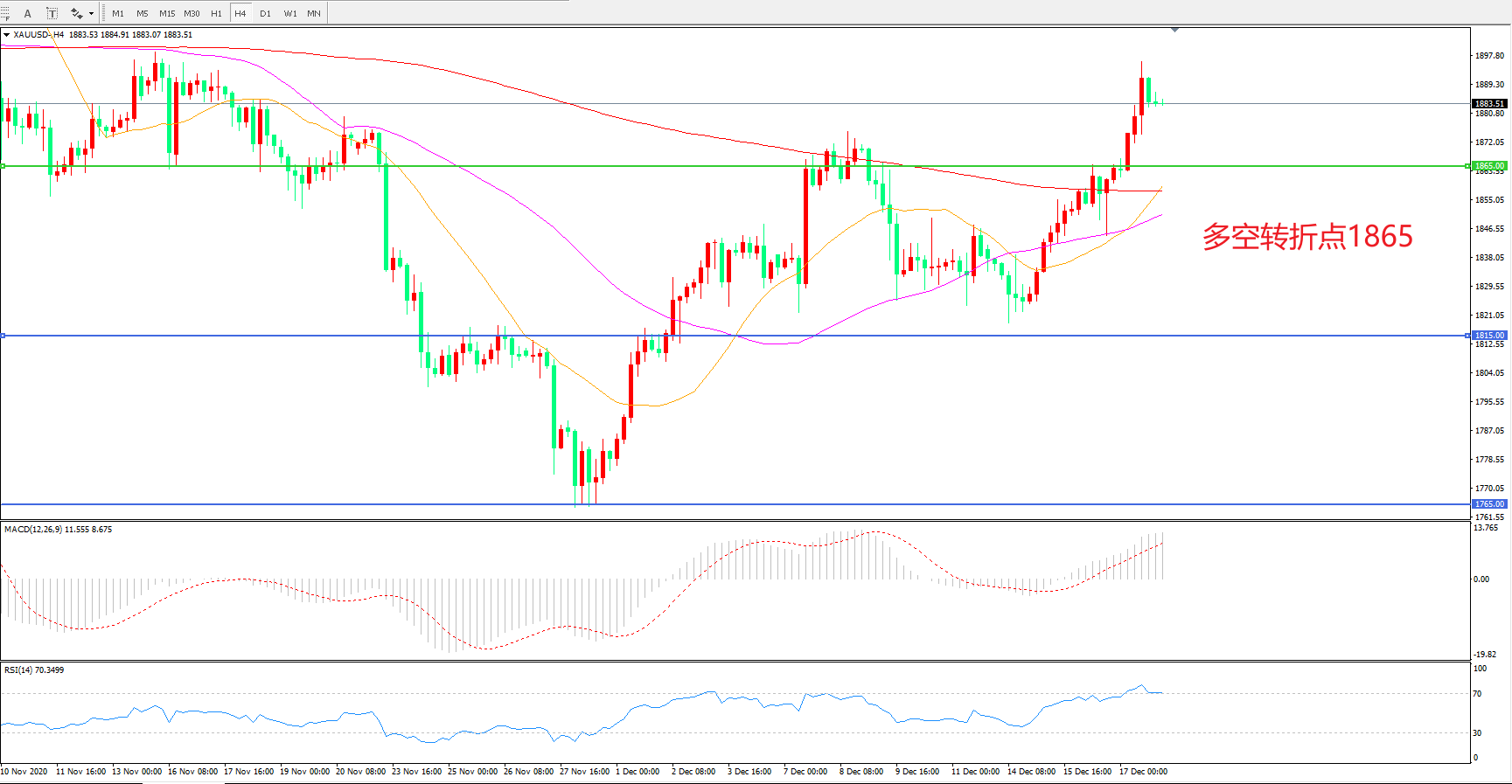 多空转折点:1865.00