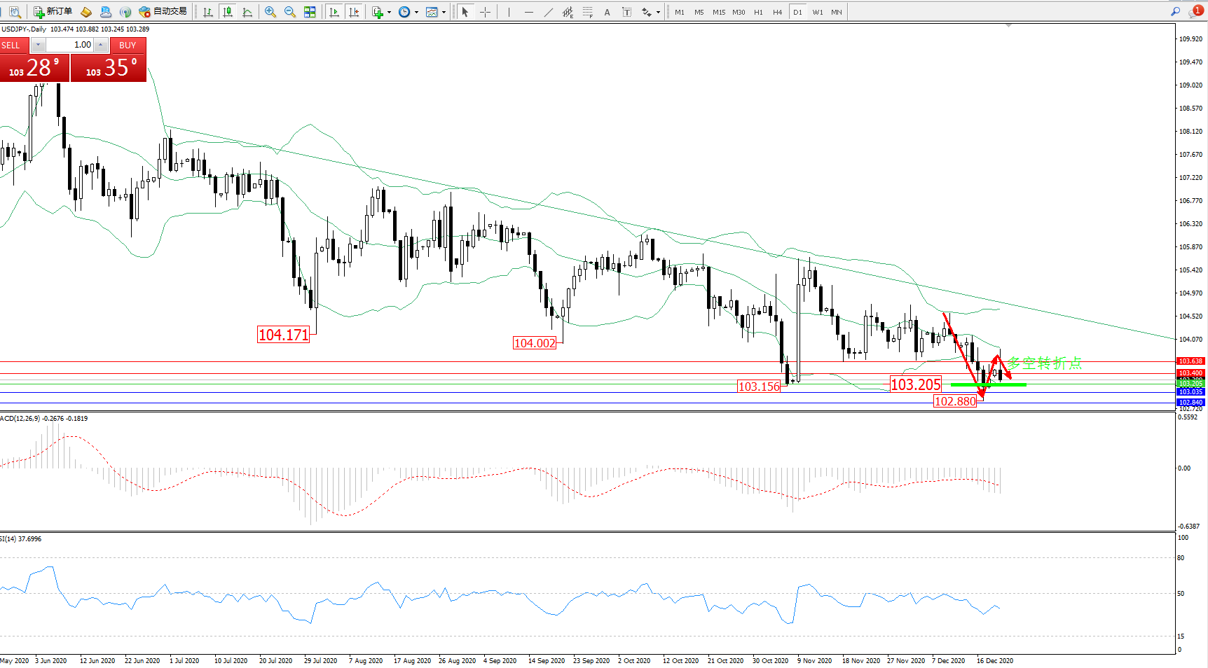 多空转折点:103.205