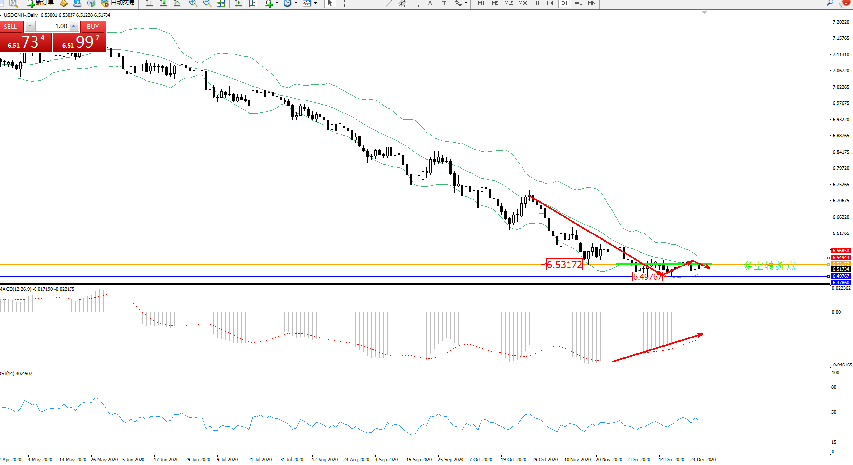 美元人民币USDCNH——日K线图显示: