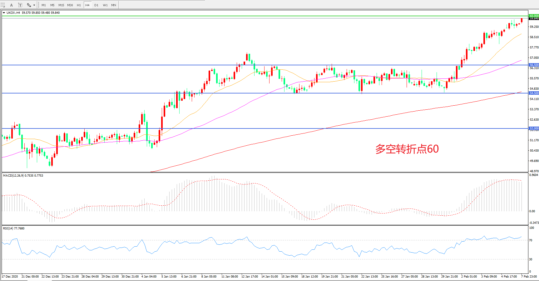交易策略:  在60.00之上看涨,目标64.00    67.00
