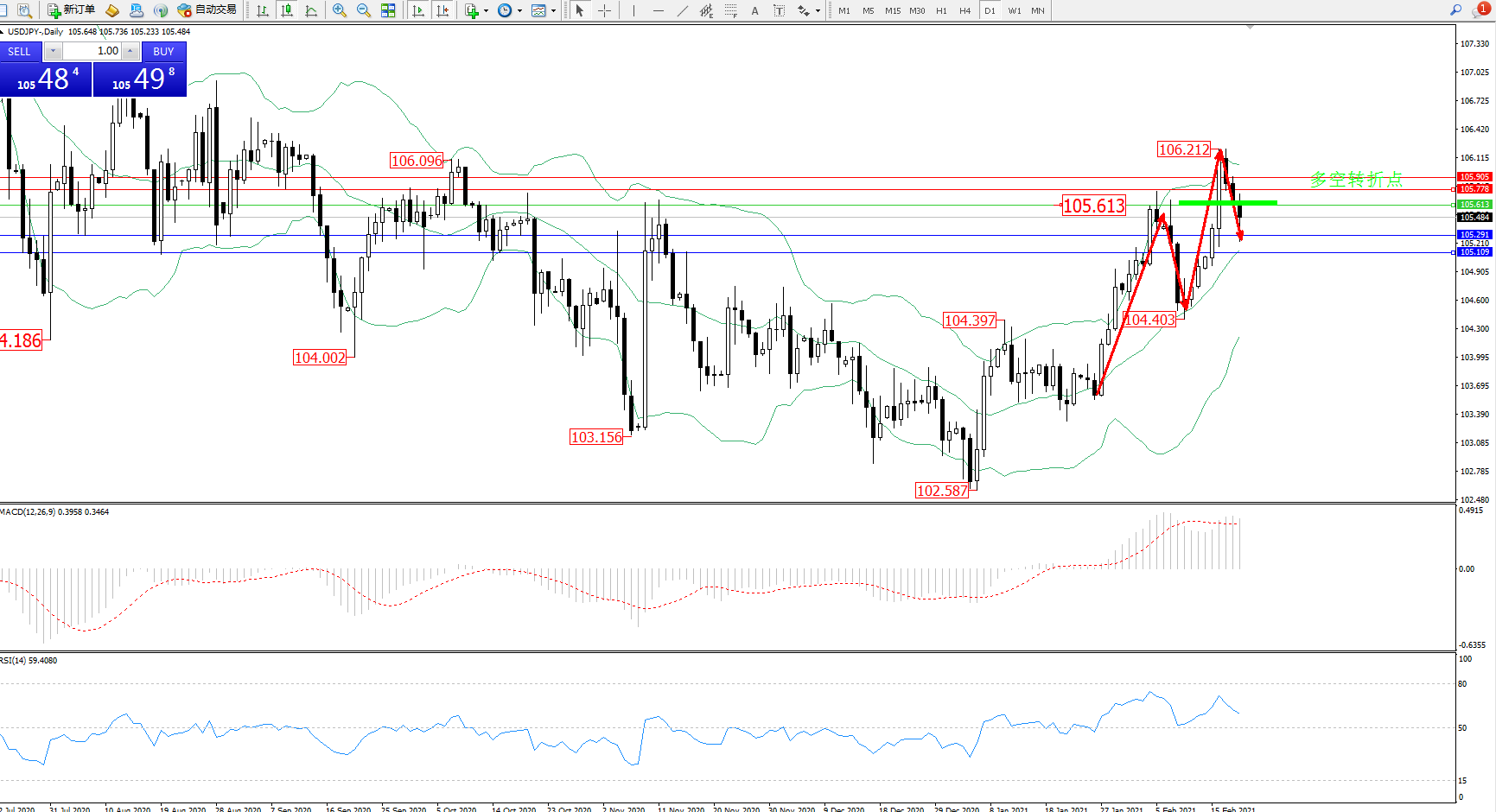 多空转折点:105.613