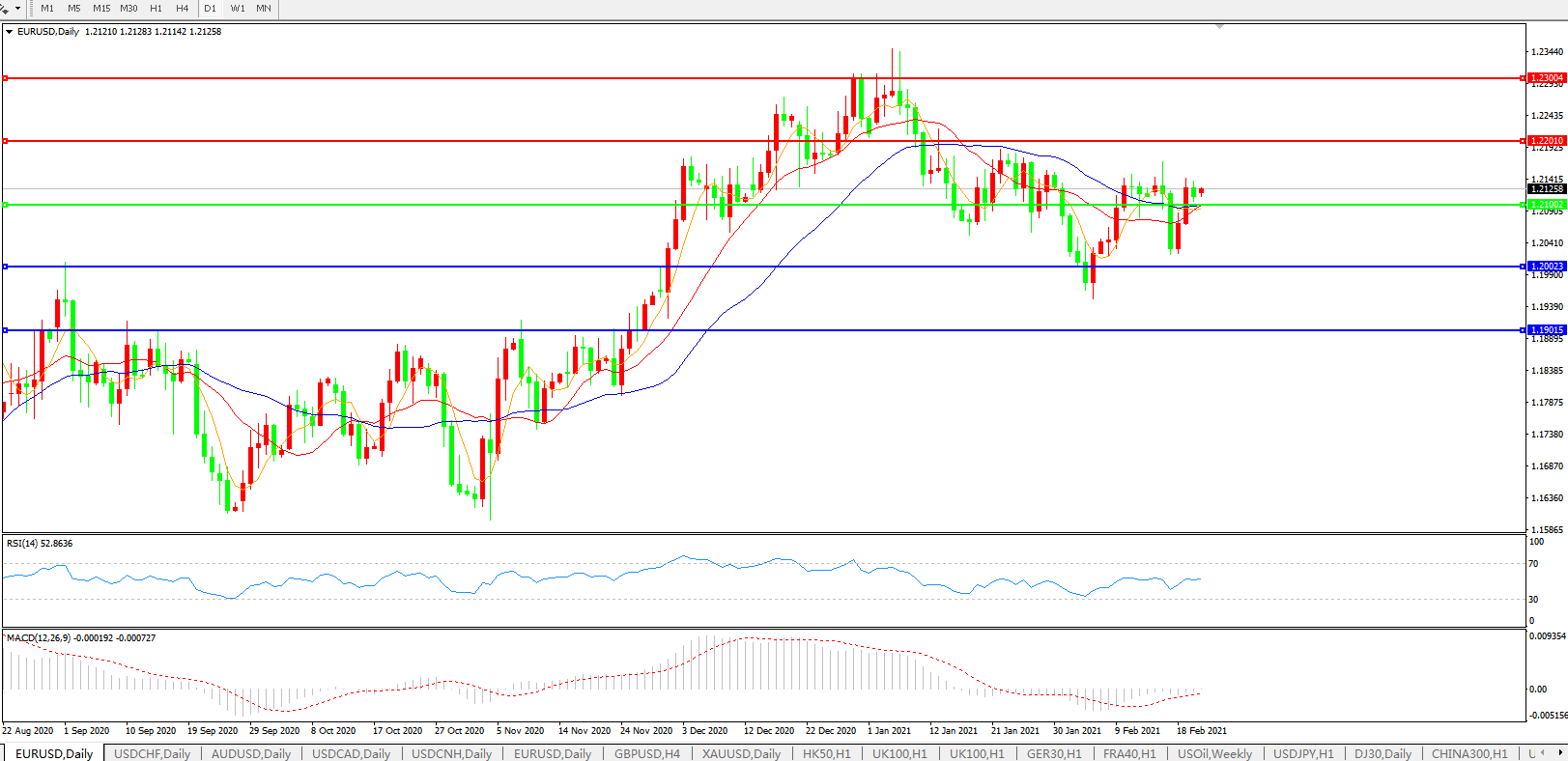 欧元兑美元EURUSD   日线图: