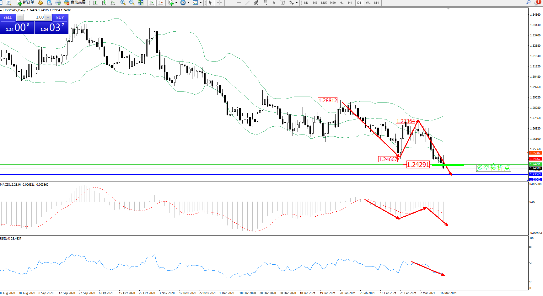 美元加元USDCAD——日K线图显示: