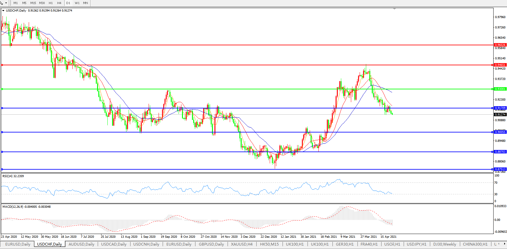 美元兑瑞郎USDCHF    日线图: