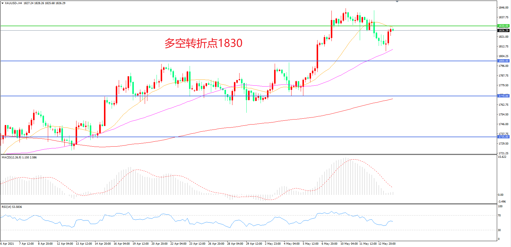 4小时图看,油价探底回升,整体表现有所回暖,区间震荡迹象明显,68美元成为短线支撑,70美元成为上方阻力,MACD绿柱缩短,RSI指标向上,日内延续震荡概率较大。