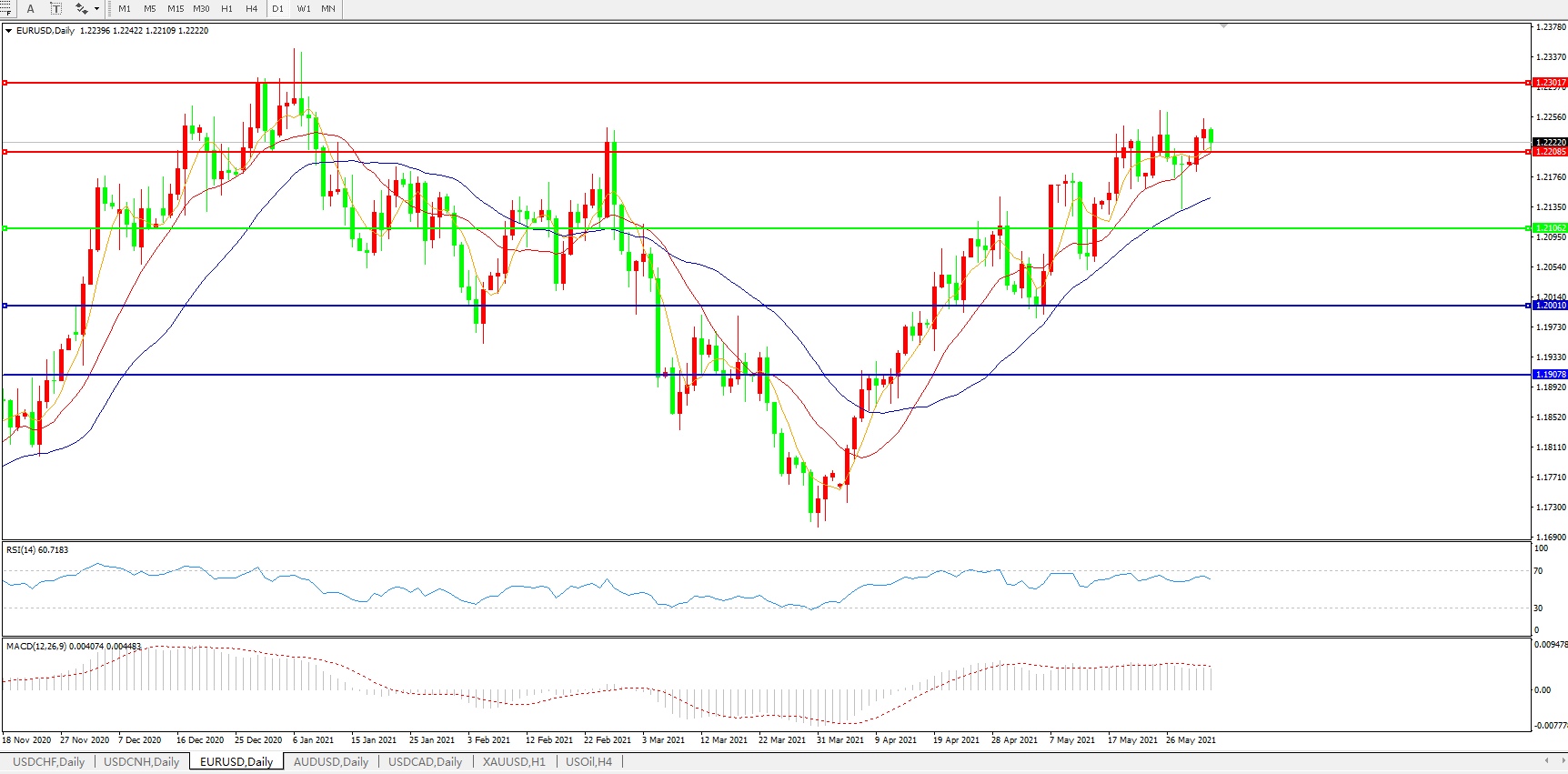 欧元兑美元EURUSD   日线图: