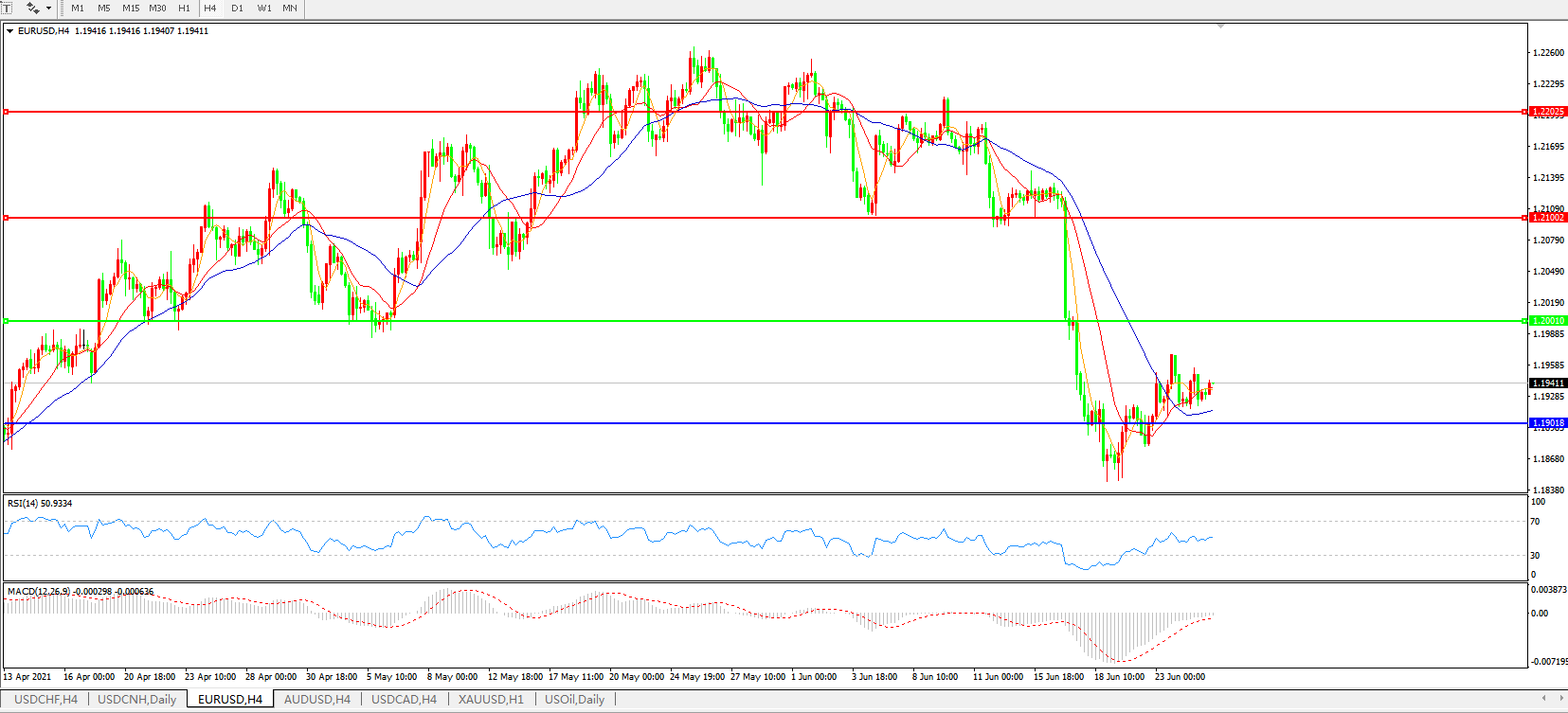 欧元兑美元EURUSD   4小时图: