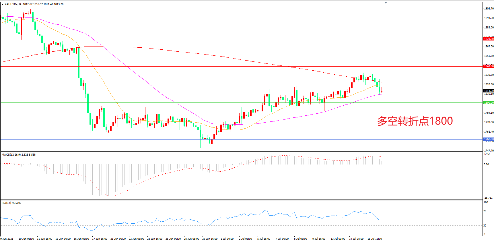 交易策略: 在1800.00之上看涨,目标1840.00 1870.00
