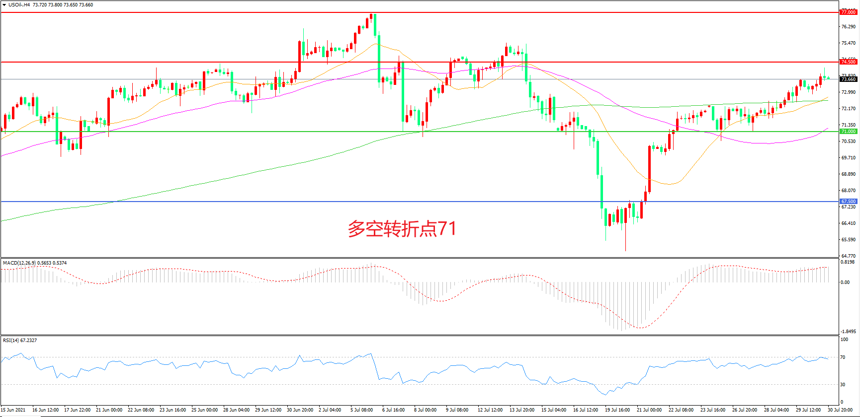 交易策略:在71.00之上看涨,目标74.50 77.00