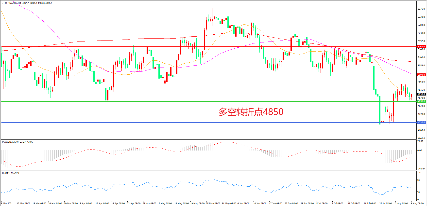 多空转折点:4850.00