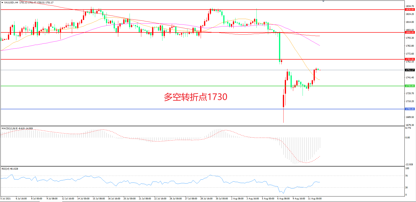 多空转折点:1730.00