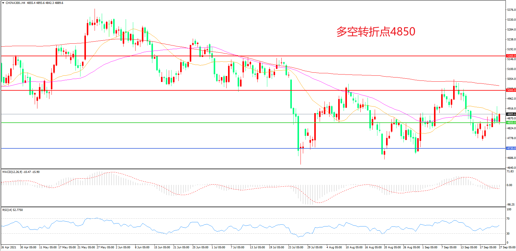 多空转折点:4850.00