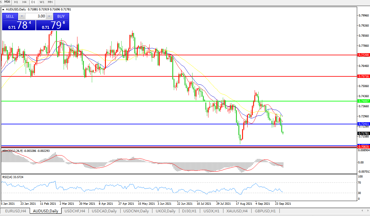 交易策略:0.7400下方看跌,目标0.7240、0.7080