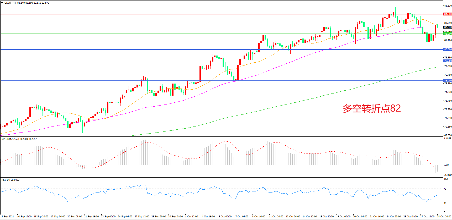 多空转折点:82.00
