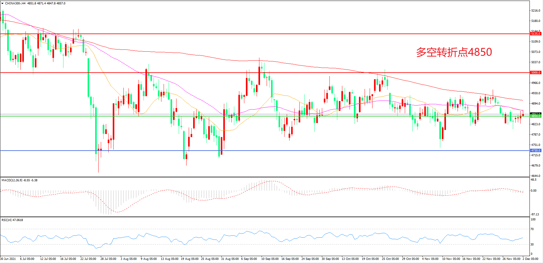 多空转折点:4850.00