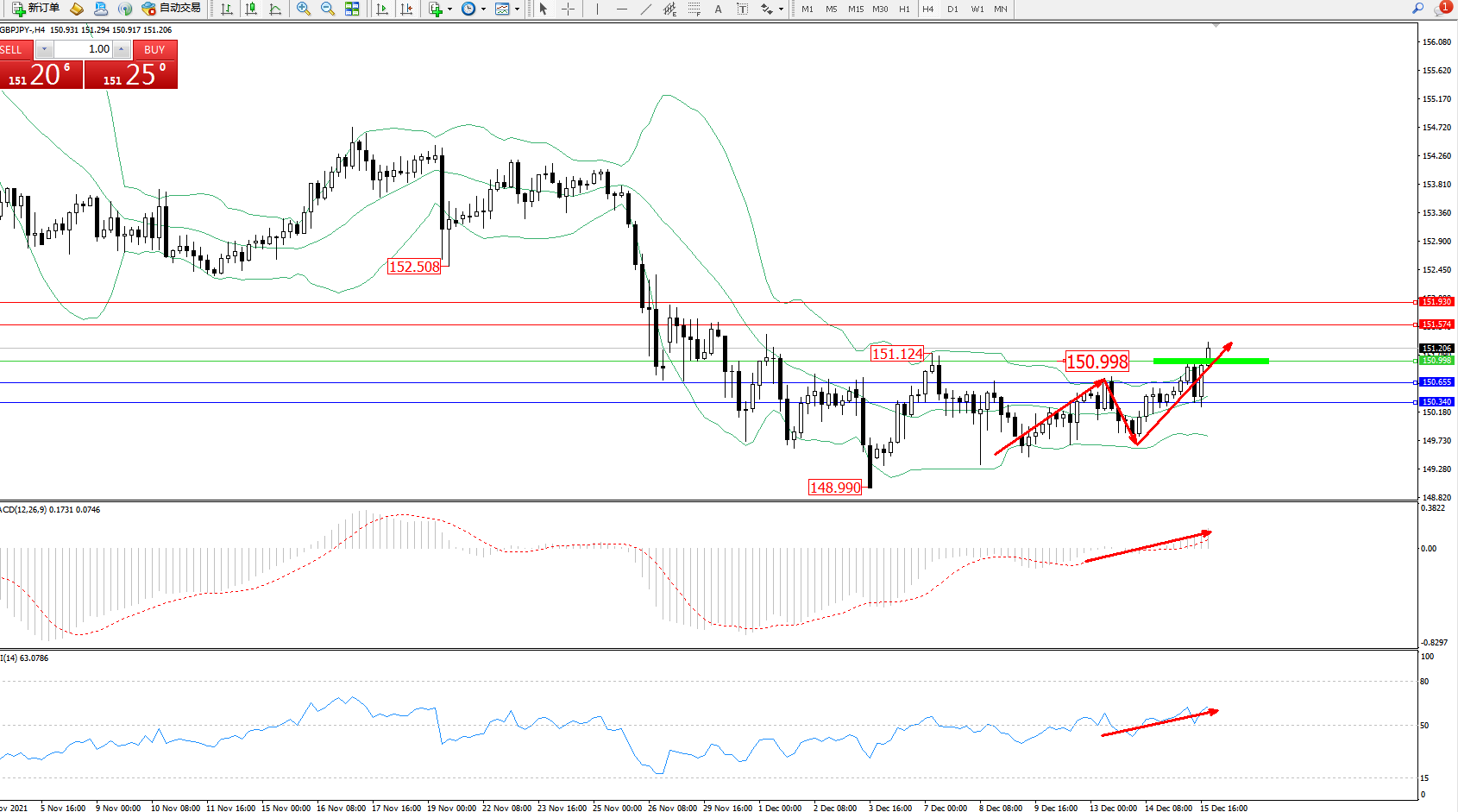 交易策略:150.998上方看涨,目标151.574、151.930