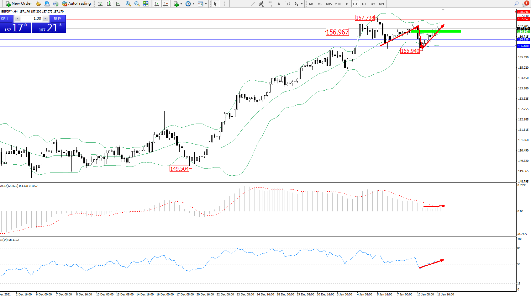 交易策略:156.967上方看涨,目标157.652、158.046