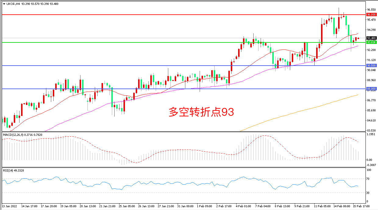 周二(2月15日),普京表态同意继续循着外交道路努力后,俄罗斯将从乌克兰边境撤离部分部队,地缘局势缓和导致油价回落,布伦特原油破位下行后收报93.47美元/桶。目前地缘政治因素短期有所降温,但俄乌的冲突仍有炒作空间炒作,因为即便是俄罗斯部分军队已经回归原驻地,但并不会大规模的撤军,一旦市场再次紧张起来,油价仍然有可能再度反弹。