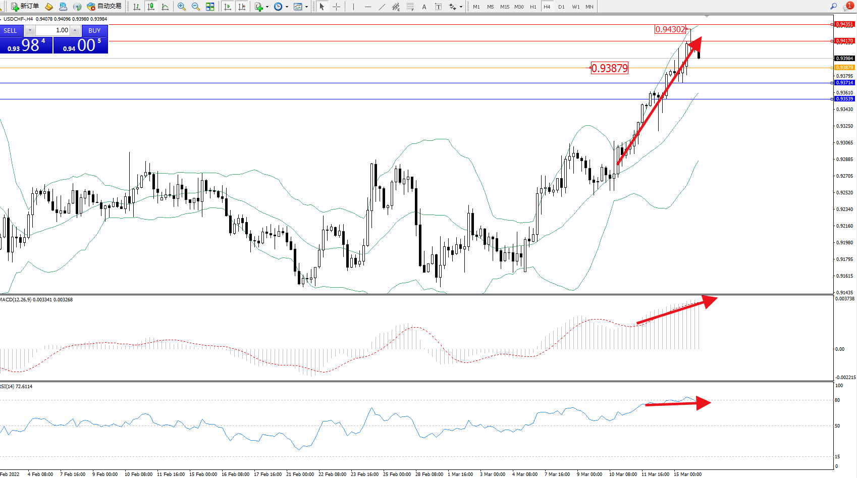 美元瑞郎USDCHF——4小时K线图显示: