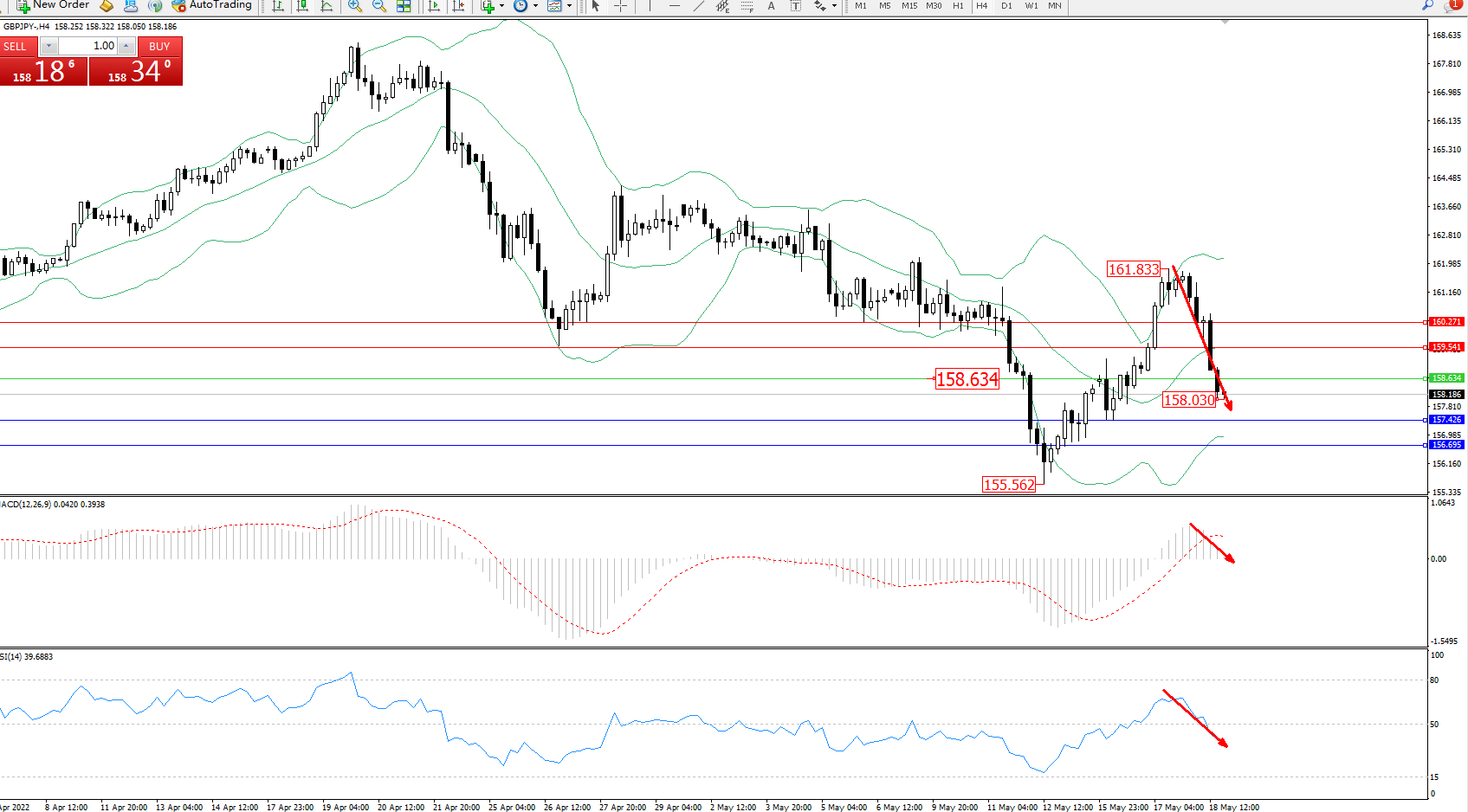 交易策略:158.634下方看跌,目标157.426、156.695
