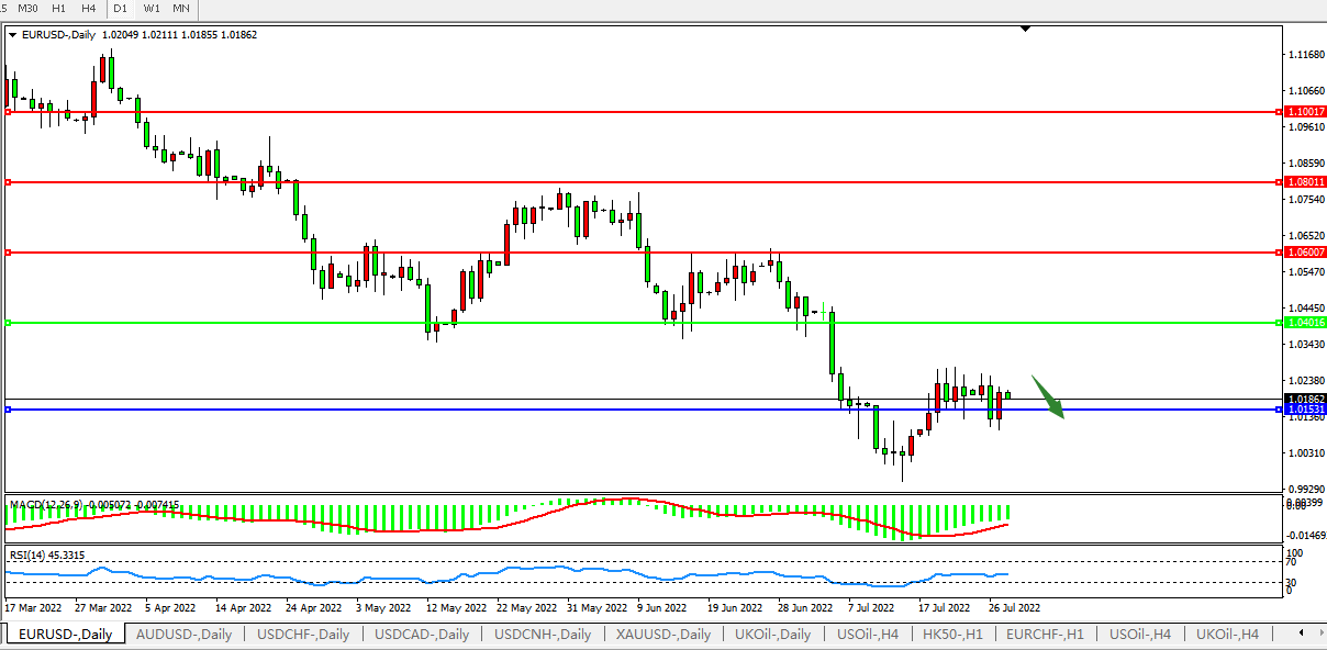 交易策略:1.0400下方看跌,目标1.0150、1.0000