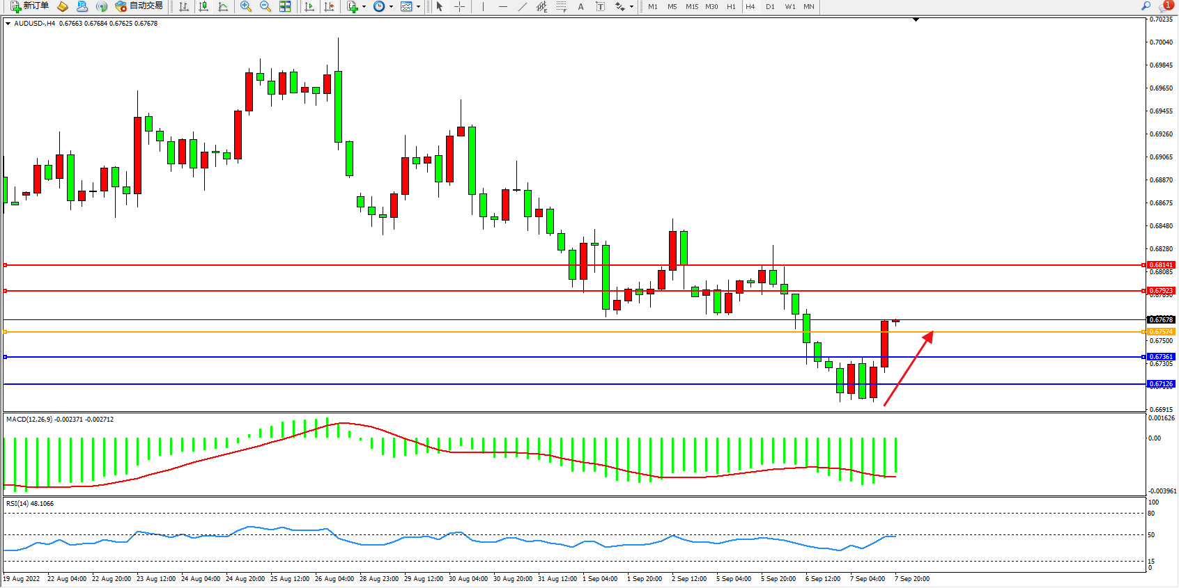 澳元兑美元维持0.67678附近震荡,澳大利亚公布的第二季度GDP数据料显示经济状况良好,尽管利率大幅上升,但消费者支出仍在很大程度上推动经济活动。