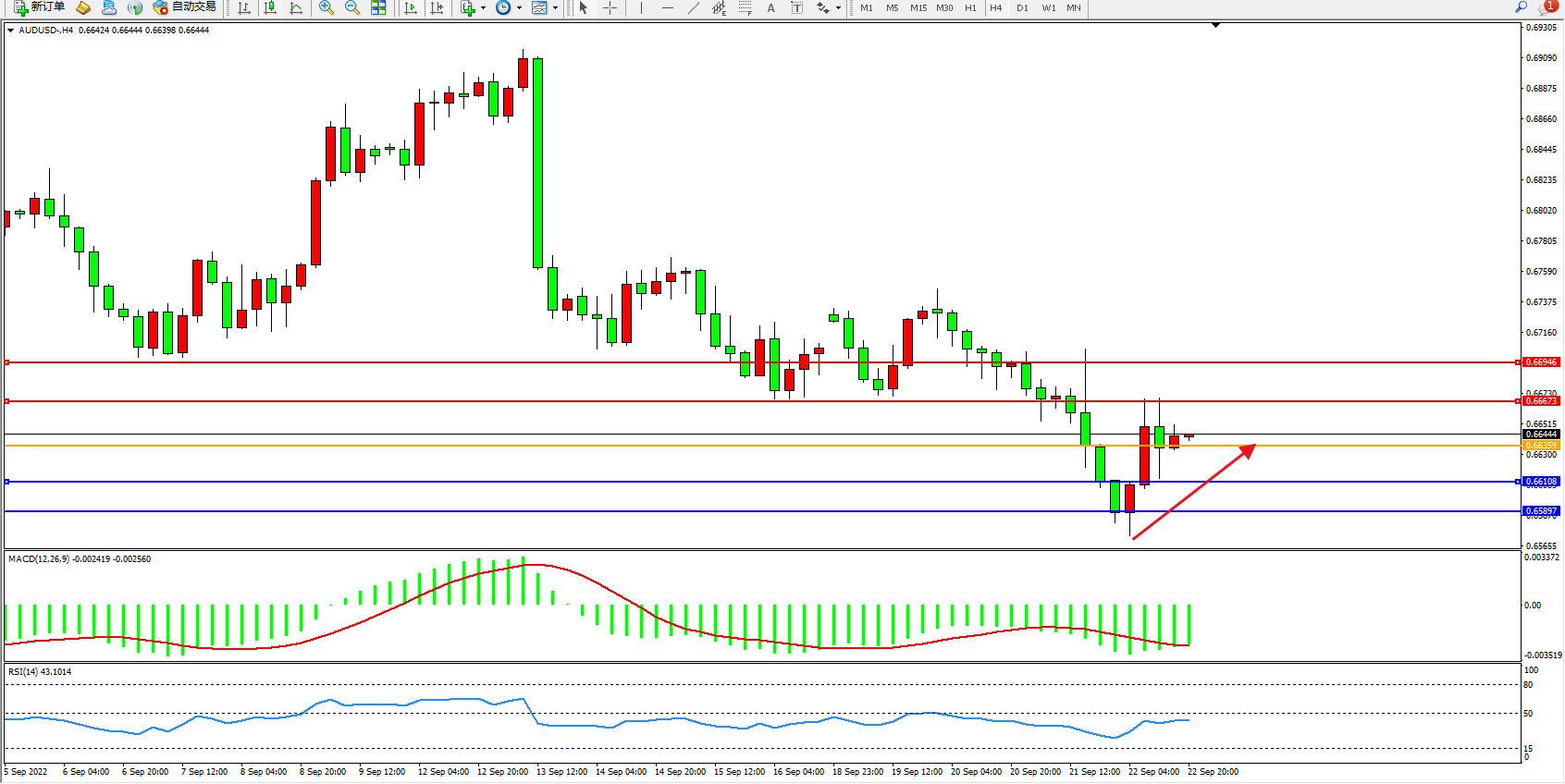 交易策略:0.66359上方看涨,目标0.66673、0.66946