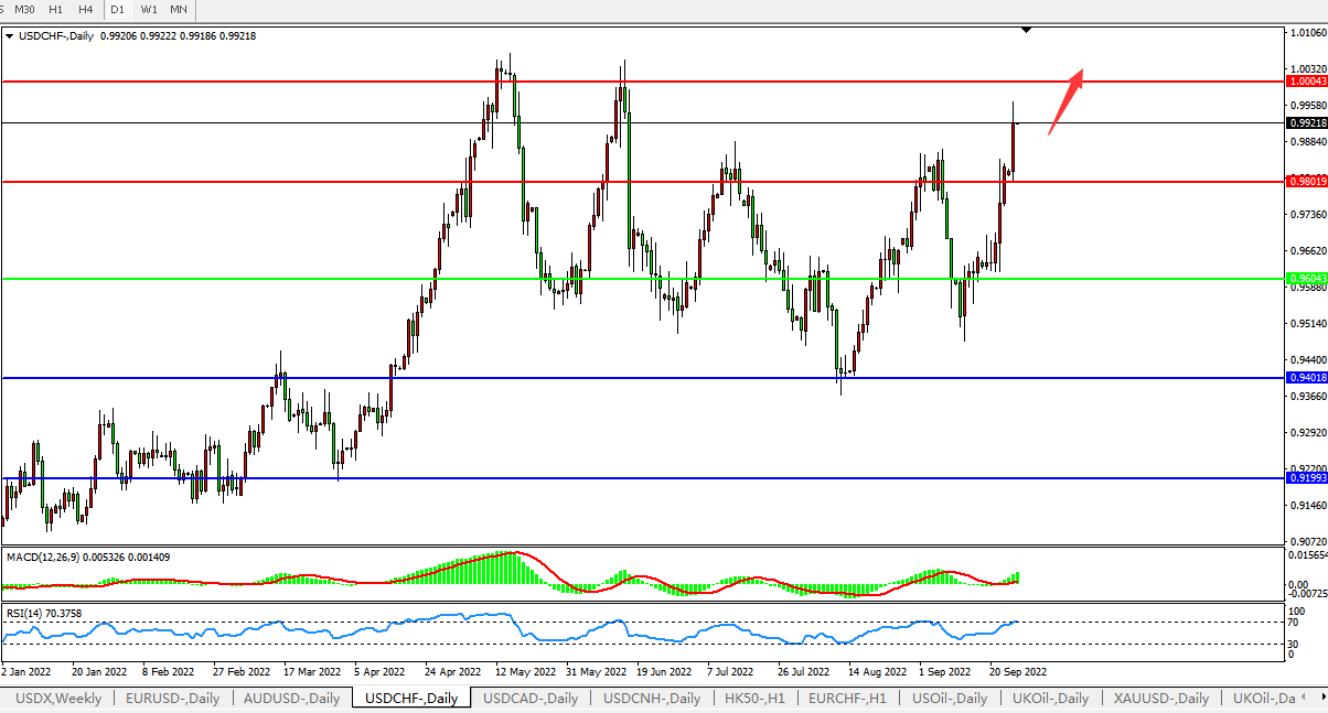 美元兑瑞郎USDCHF 日线图