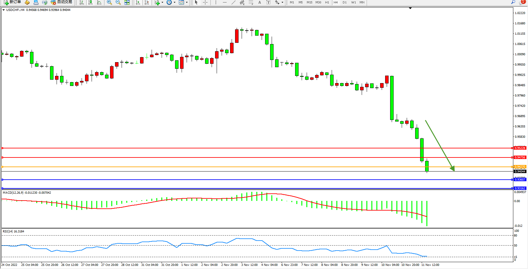 美元瑞郎USDCHF——4小时K线图显示:
