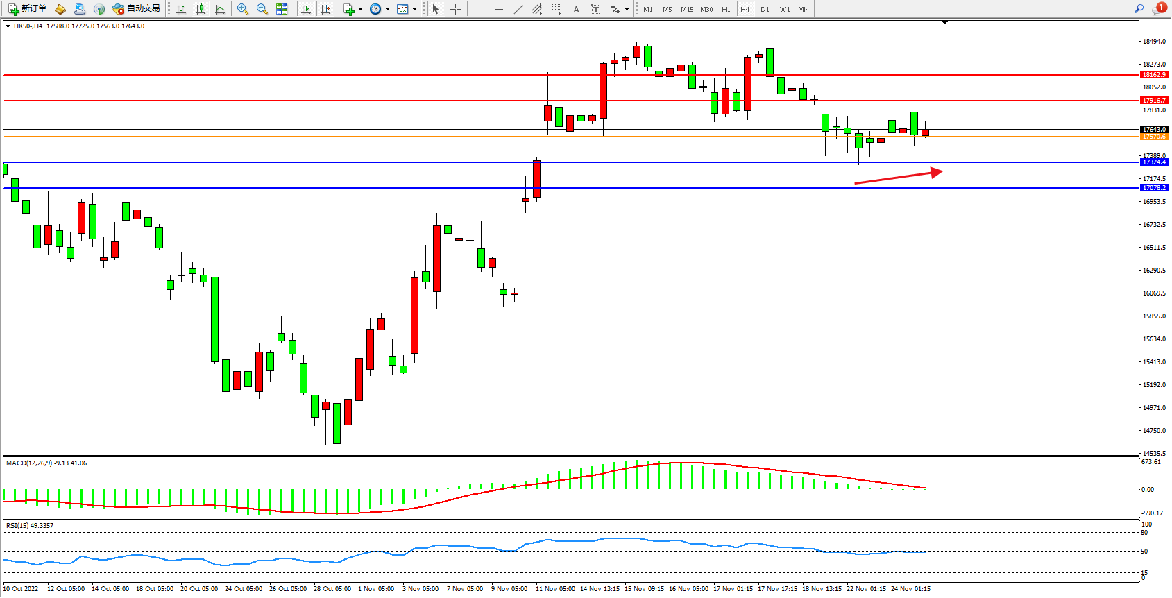 恒指HK50 4小时图