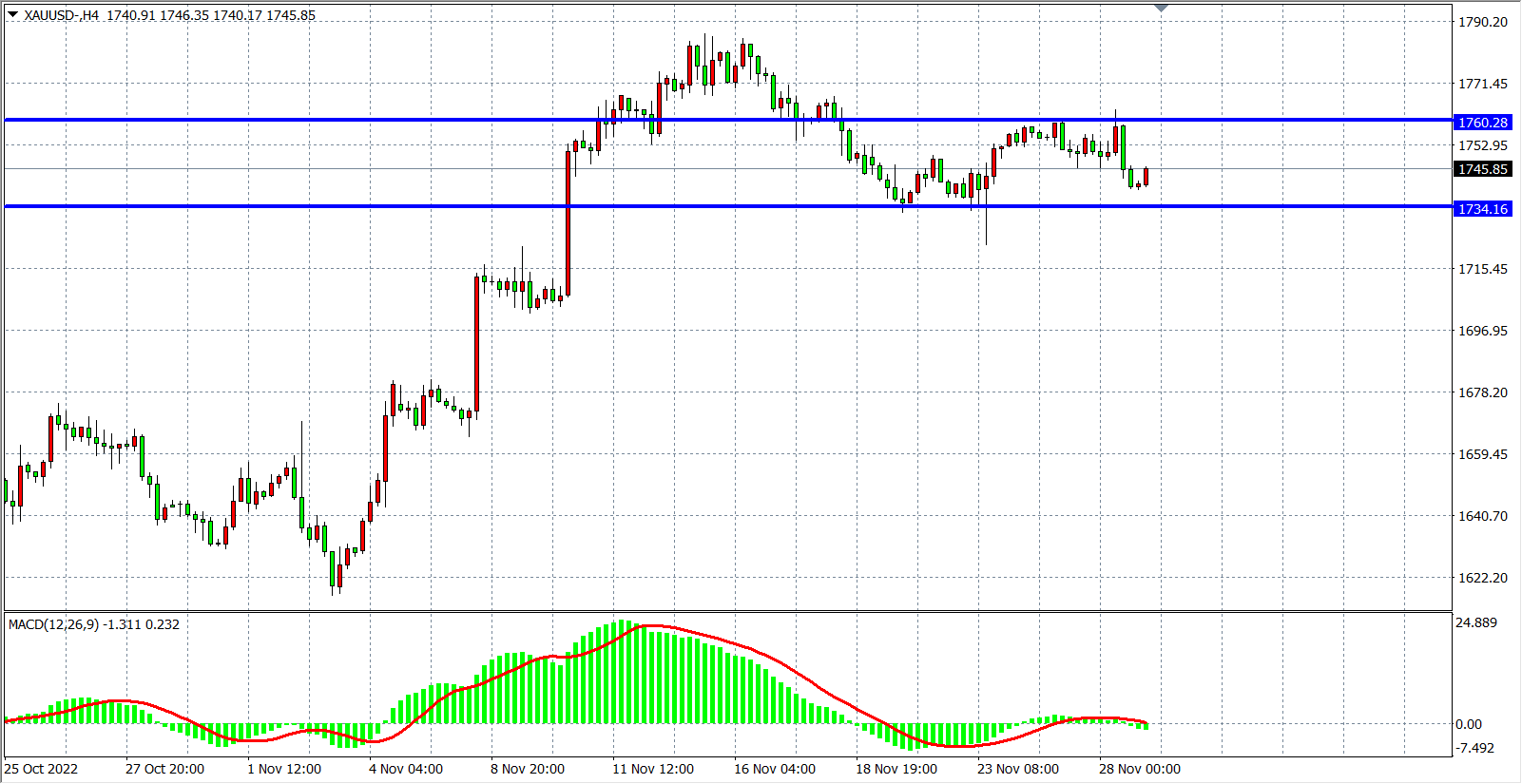 现货黄金XAUUSD    4小时图