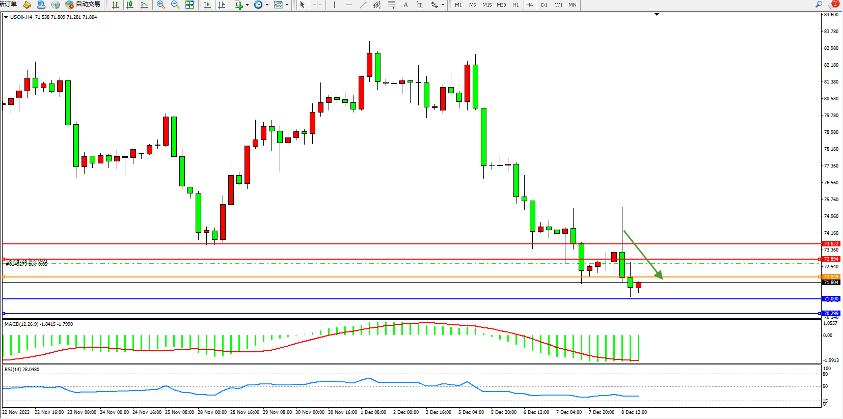 交易策略:72.039下方看跌,目标71.000、70.299