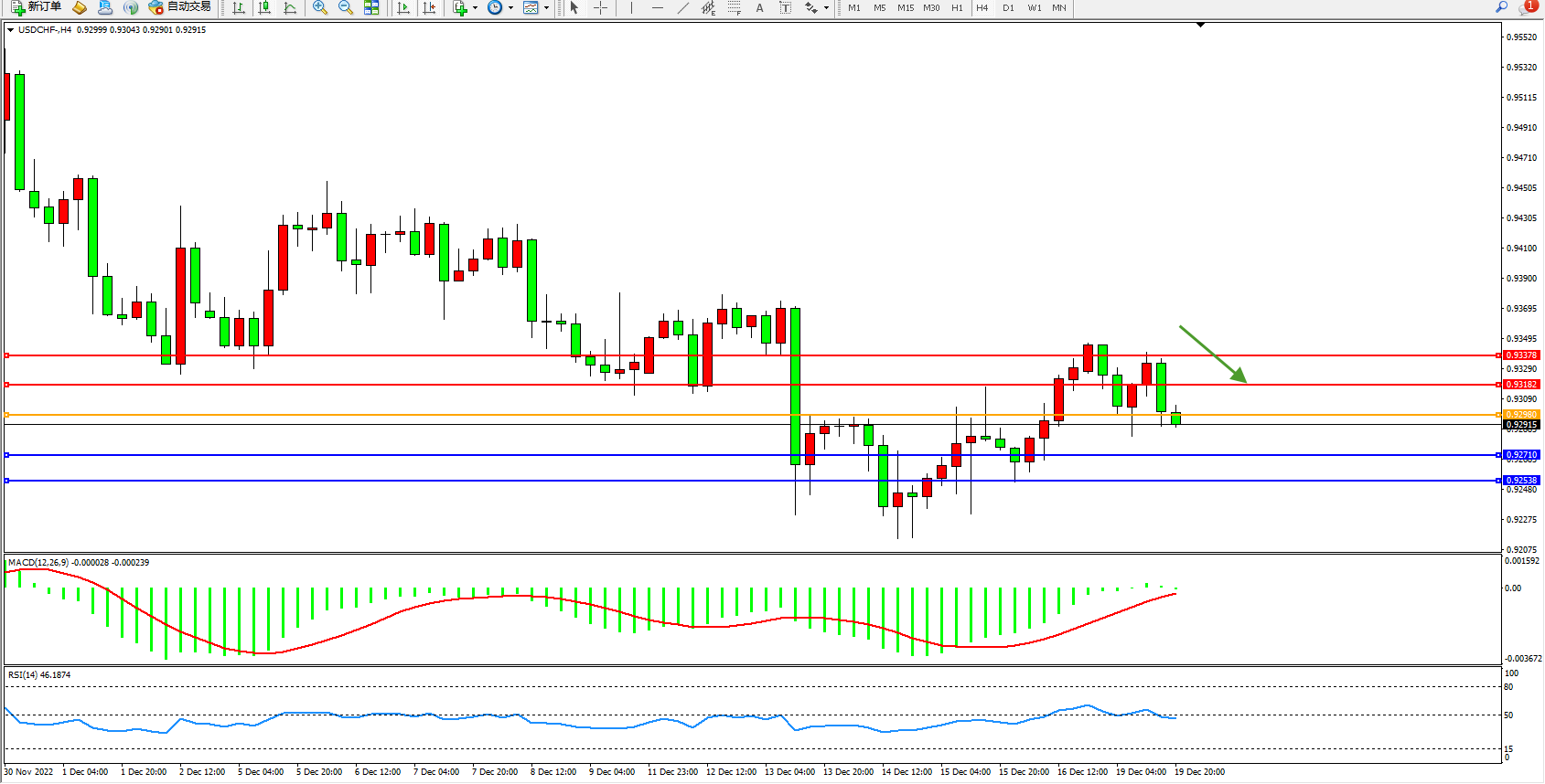 交易策略:0.92980下方看跌,目标0.92710、0.92538