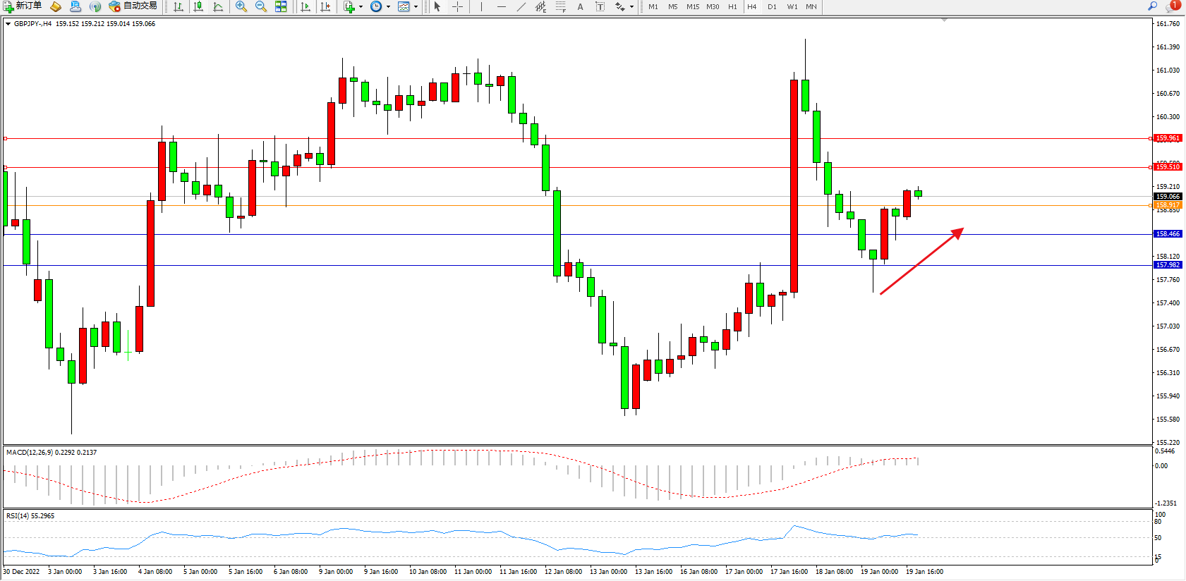 交易策略:158.917上方看涨,目标159.510、159.961