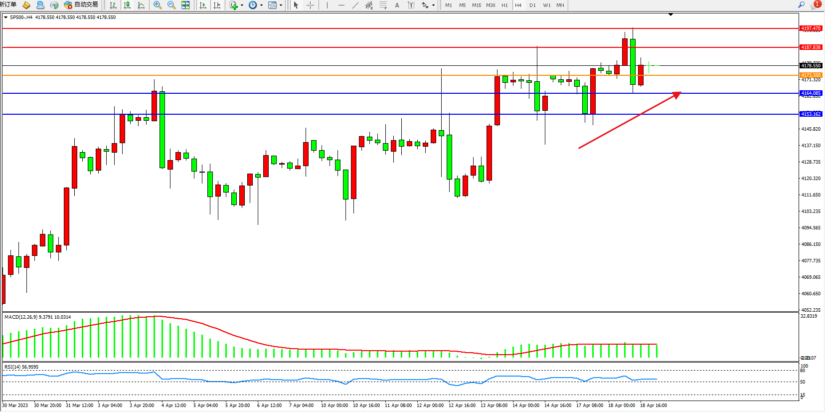 交易策略:4173上方看涨,目标4187  4197