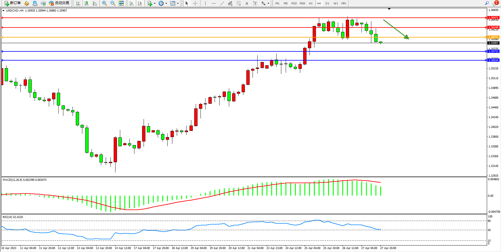 交易策略:1.36031下方看跌,目标1.35713  1.35514