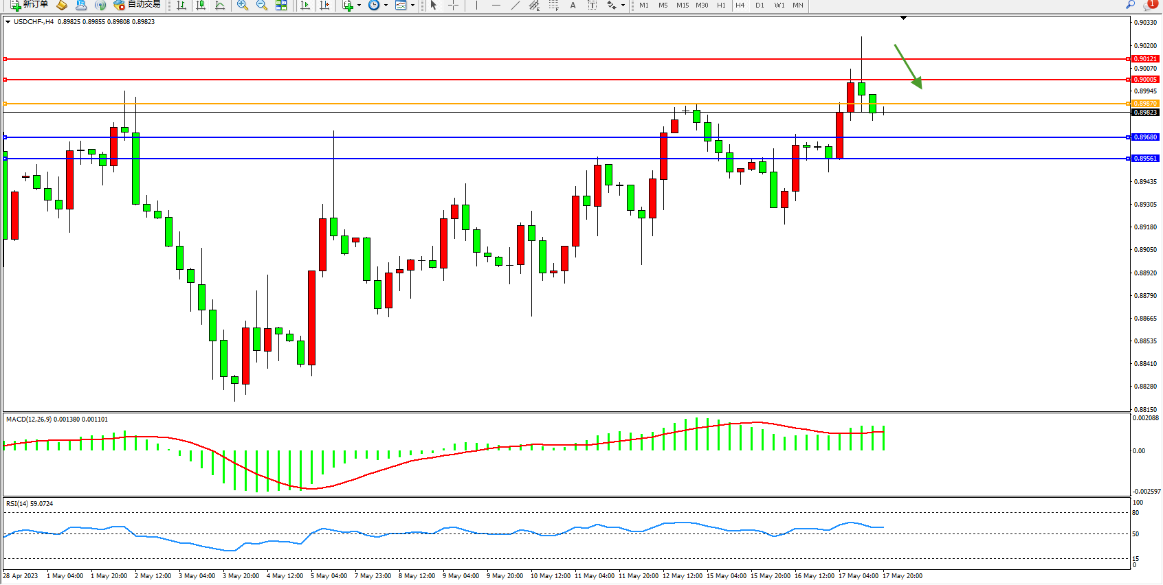 美元瑞郎USDCHF——4小时K线图显示: