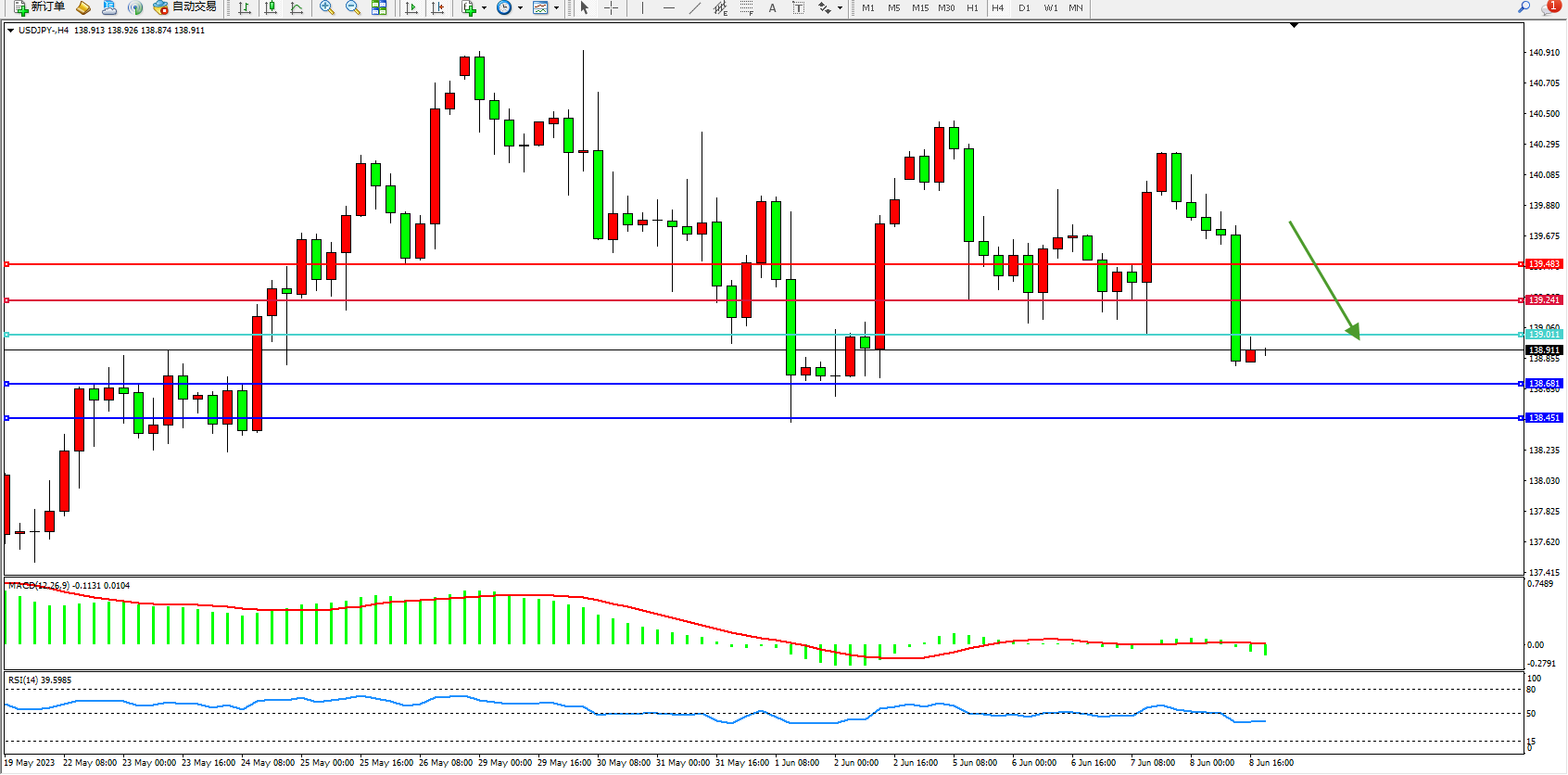交易策略:139.011下方看跌,目标138.681 138.451