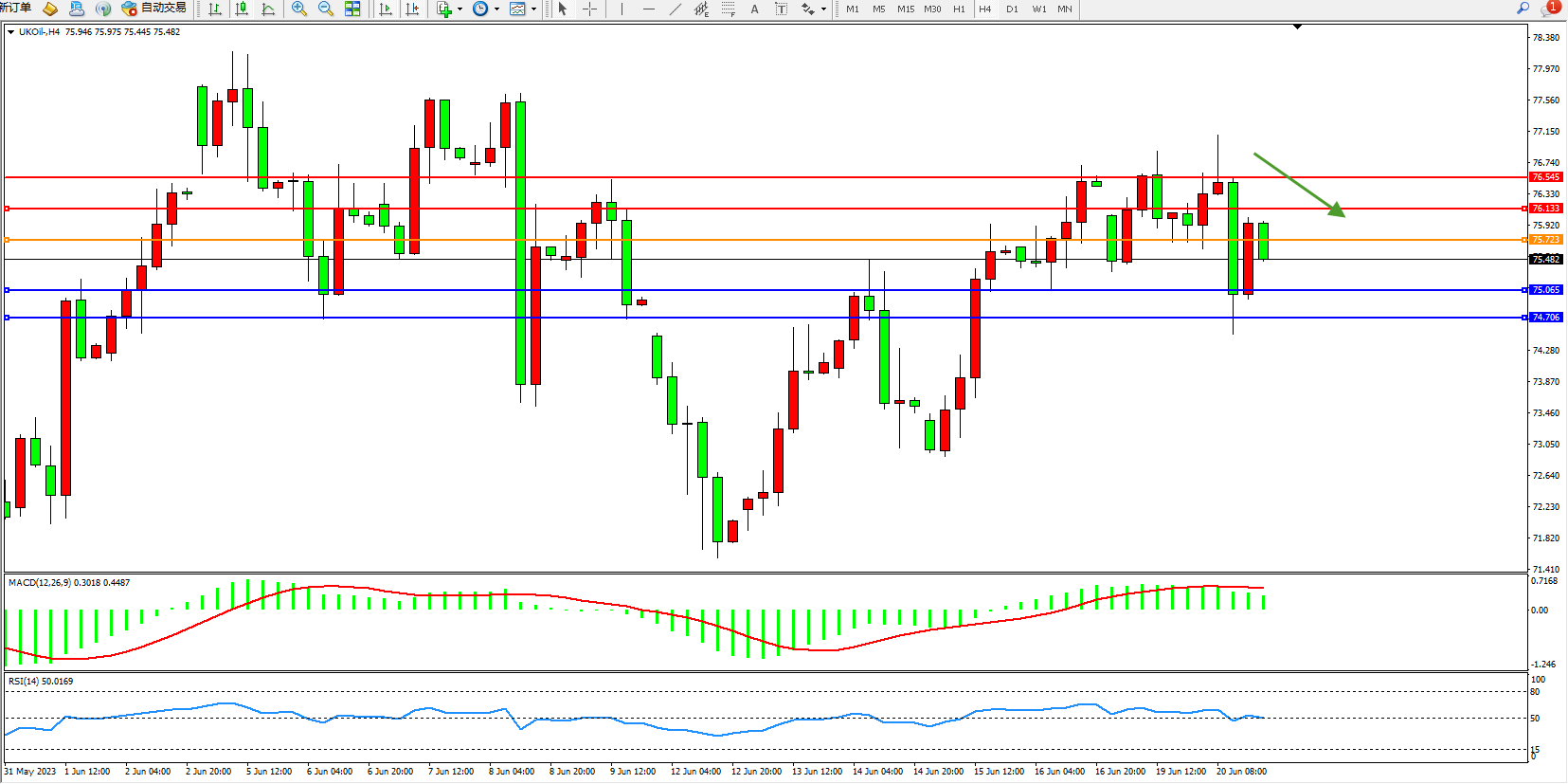 布油UKOil——4小时K线图显示:
