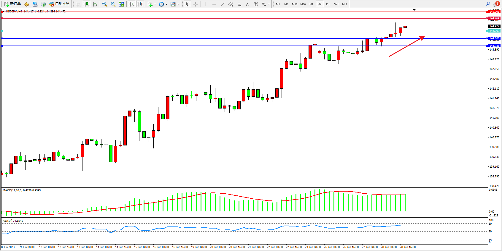 阻力位:144.764  145.009