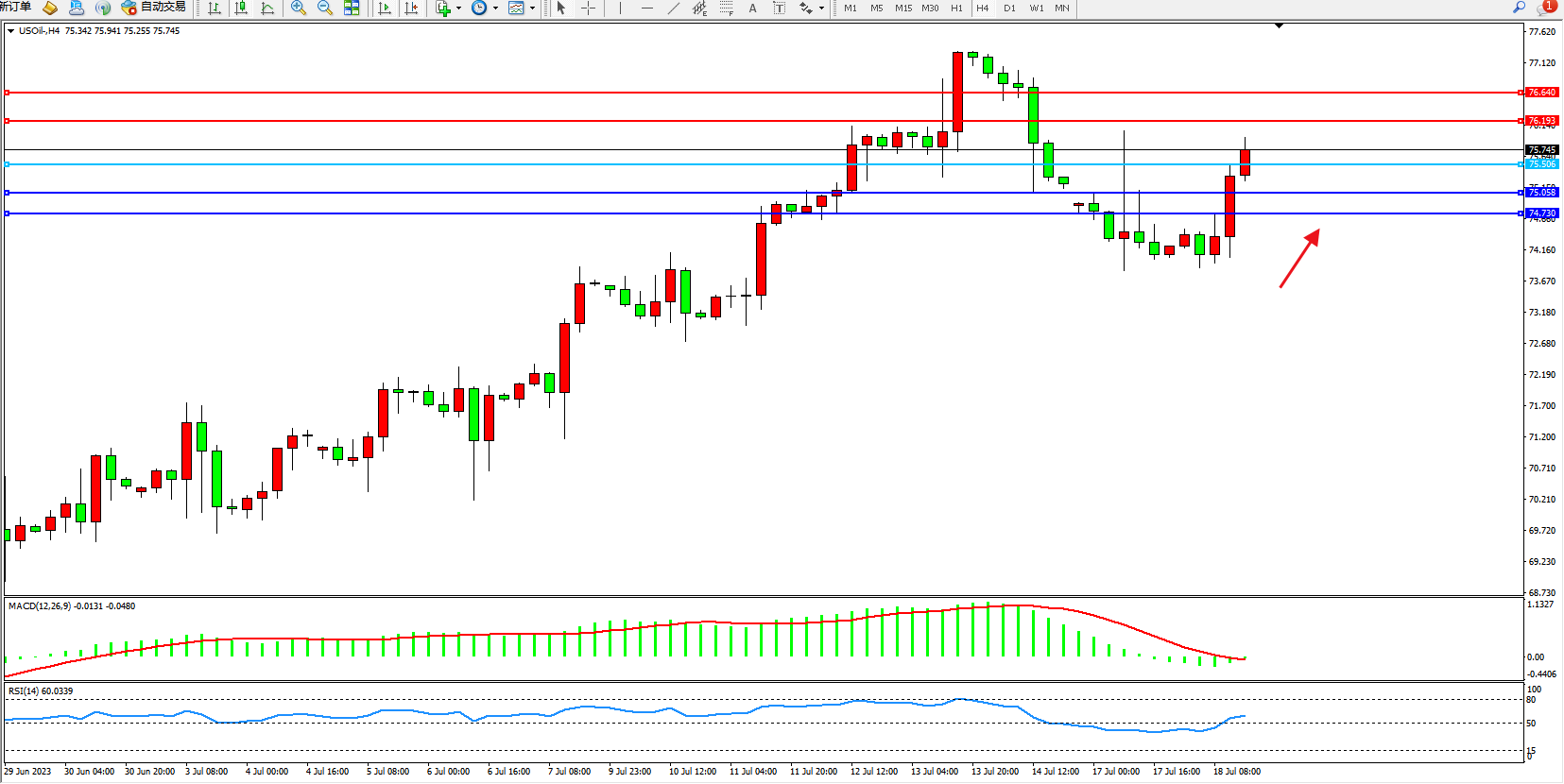 阻力位:76.193  76.640