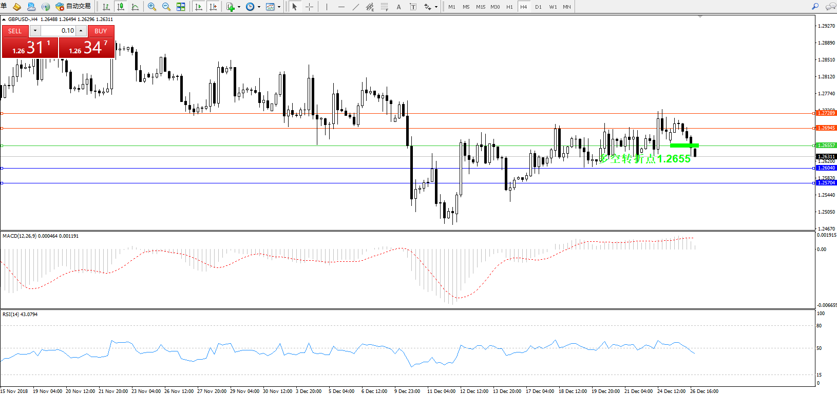 交易策略:1.2655下方看跌,目标1.26040、1.25704