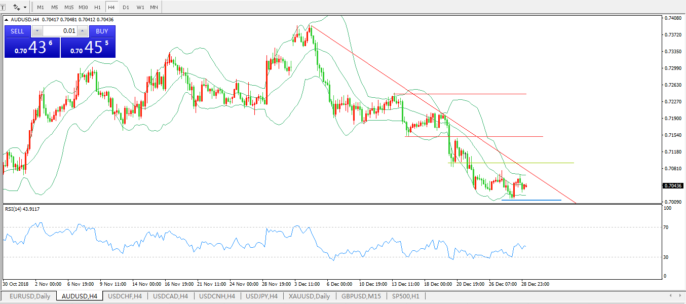 交易策略:在0.7090之下,看跌,目标价位为0.7015,然后为0.6950